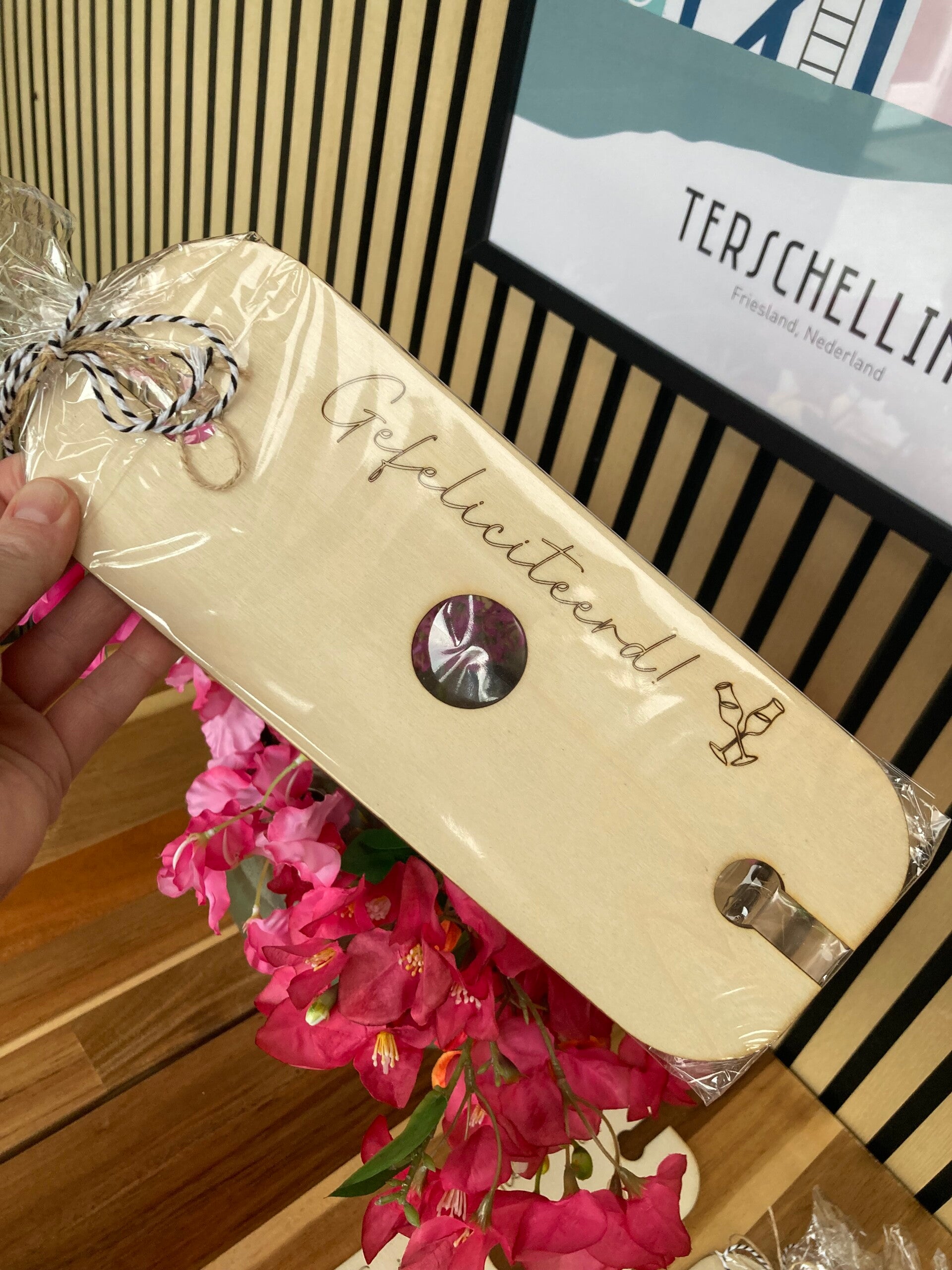 Met deze houten wijnplank met tekst maak jij je cadeau helemaal af!